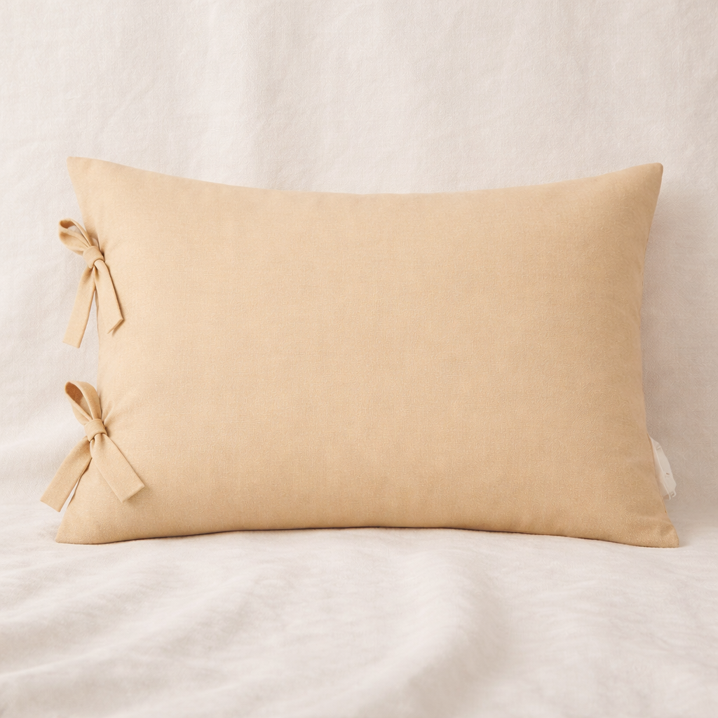 Almohadón confeccionado a mano en lino, diseñado para vestir la cama con una estética natural, serena y atemporal. Las amarras laterales aportan un detalle sutil y decorativo, realzando su carácter artesanal y permitiendo una terminación delicada y funcional.