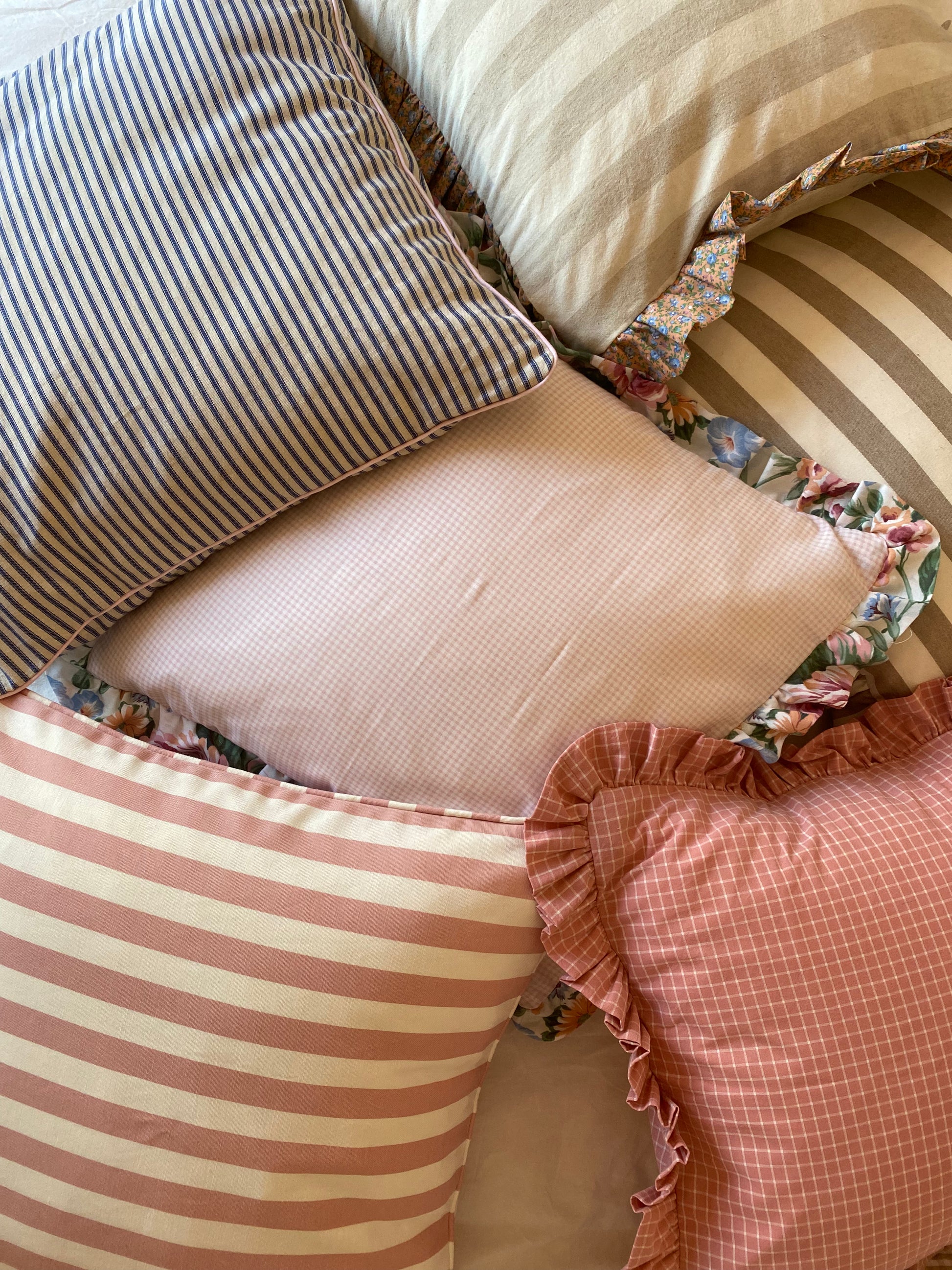 Funda cojín rayas, rosa