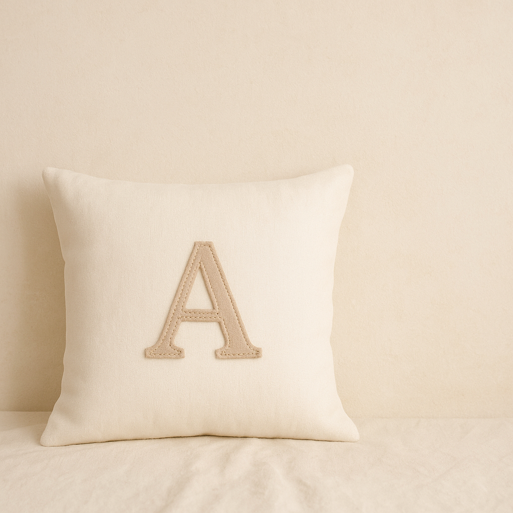 Haz tu cojín único agregando una inicial personalizada, cuidadosamente aplicada a mano.